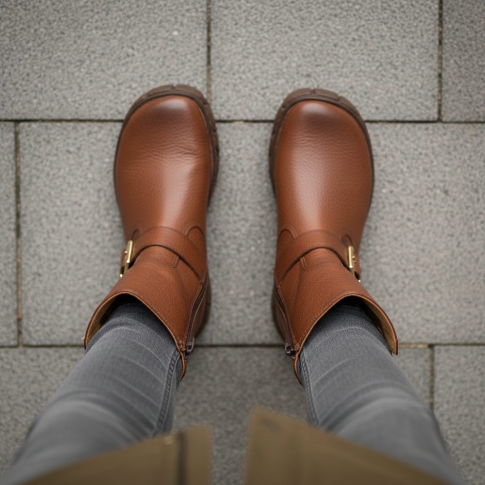 These brown boots, decorated with an elegant buckle and equipped with a practical zip on the shaft, are made of premium nappa leather. Inside, thanks to the open -pored and breathable smooth leather, the boots offer a comfortable fit, while the Ultragrip sole ensures flexibility and slip resistance. So you enjoy the natural feeling of barefoot with every step without having to do without safety and comfort.