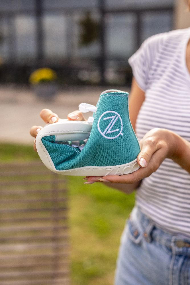 Made from turquoise blue denim, you not only offer a fresh, striking design, but also all the advantages of a barefoot shoe. With the white toe cap and the white shoelaces, they look sporty and at the same time modern.