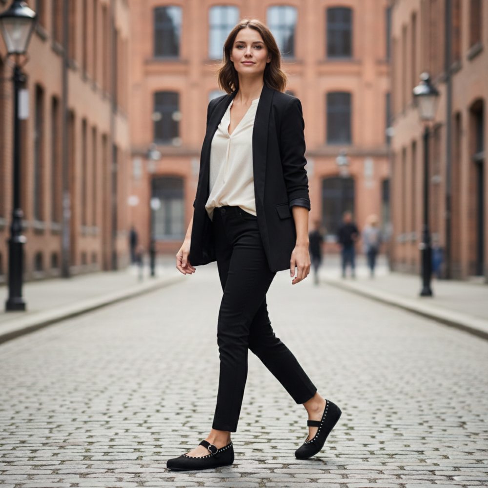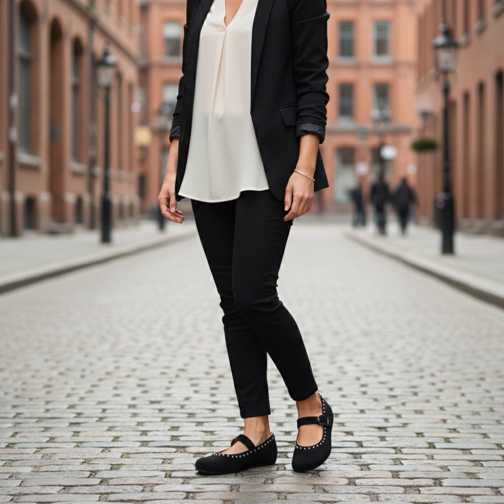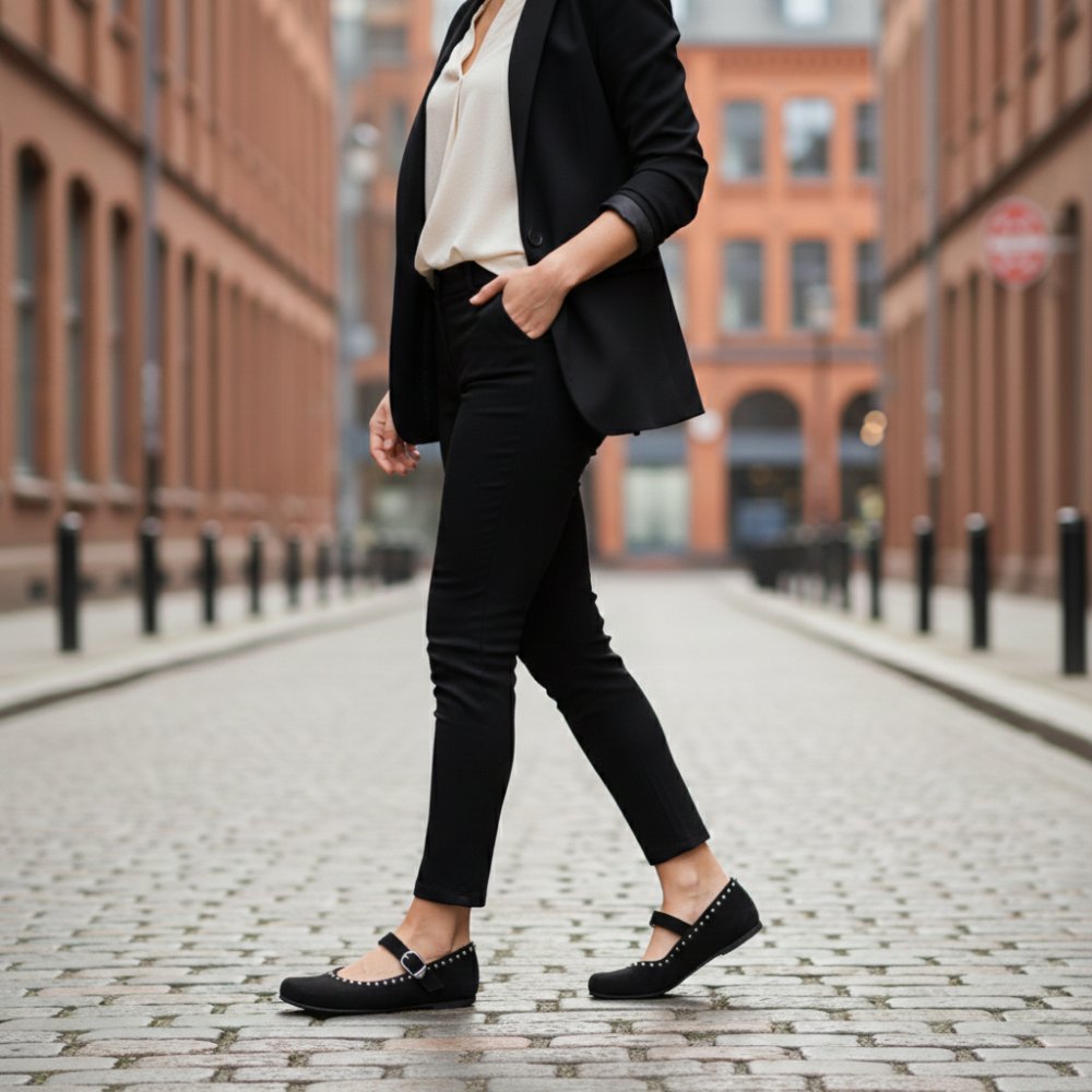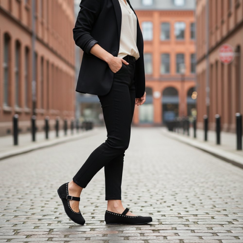 Get to know Dieqo Black, the comfortable ballerina for women who value style and comfort. The barefoot shoe decorated with round rivets is not only an eye -catcher, but also gives you the feeling of freedom with every step.
