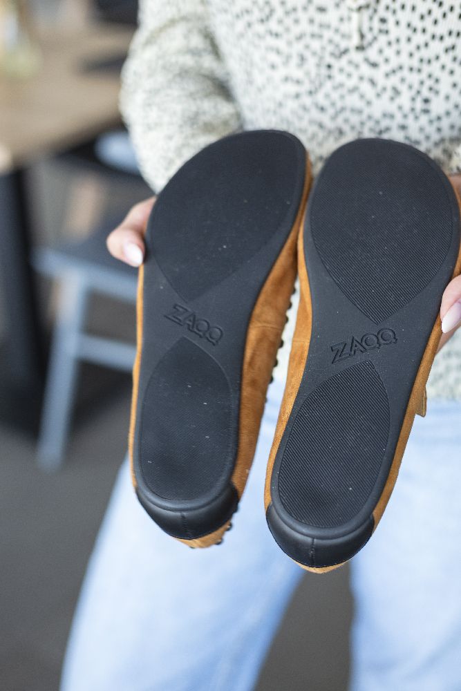 Our Dieqo Brown is our brand new ballerin shoe made of brown suede. This piece of jewelry is lined with round rivets and gives every outfit a touch of glamor, without foregoing the incredible comfort that you are used to from our barefoot shoes.