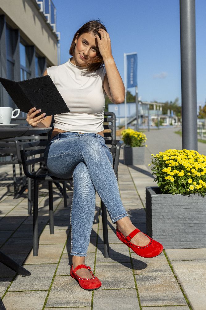 The versatility of our Dieqo Red knows no limits. Whether as a shining accent for your office outfit, as an elegant companion to your favorite dress or as a colorful eye-catcher to casual denim looks-this shoe is a real chameleon that effortlessly adapts to every occasion and every outfit. The combination of the rich red and the shiny rivets makes it the perfect partner for those who like to set statements.
