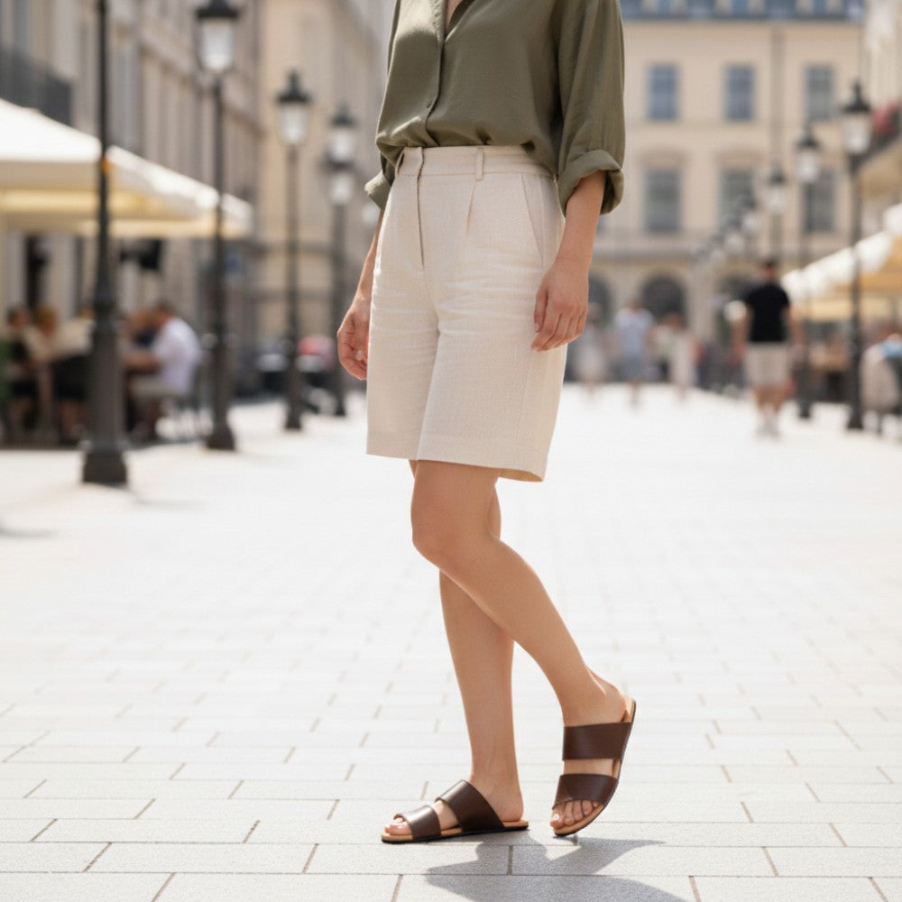 Apply it to an airy summer dress for a relaxed walk on the beach or combine them with elegant linen trousers and a blouse for a chic stroll through the city.