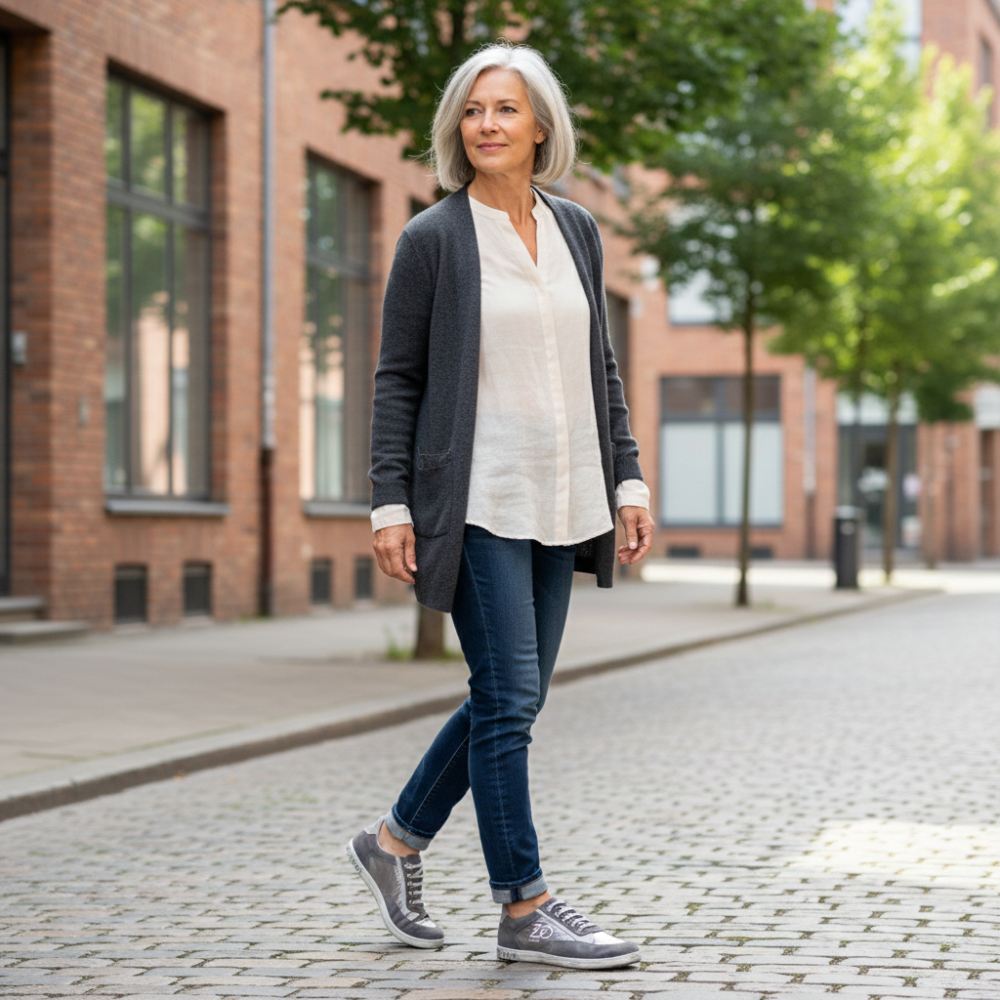 The gray suede merges with the silver smooth leather into perfect harmony. Ton in sound in subtle gray-silver you can simply combine this barefoot shoe to all colors. Sometimes classic for long trousers, sometimes cheeky to the skinny jeans, with OQTAV you have found your super comfortable companion, which always presents you from the best side.