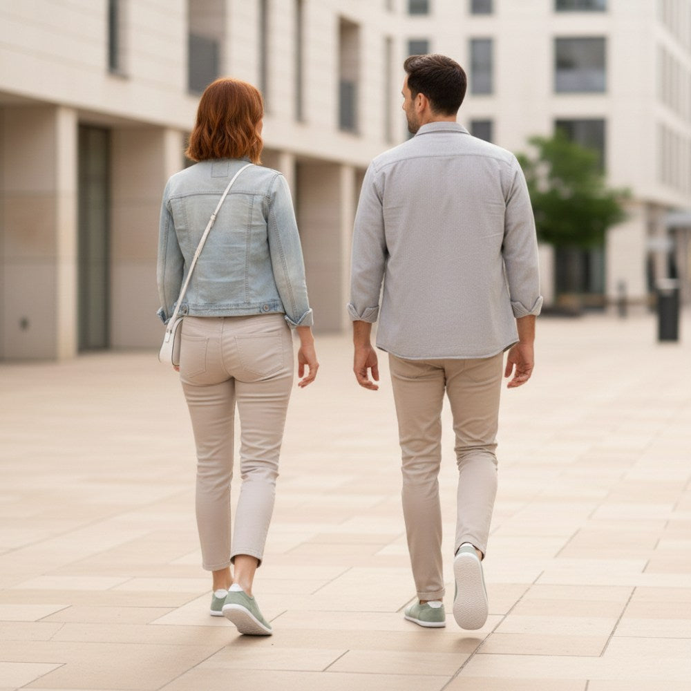 We have sewed a white sole by hand to the light gray suede. This special barefoot sole is highly flexible to give you a natural running feeling, as with all of our barefoot shoes.