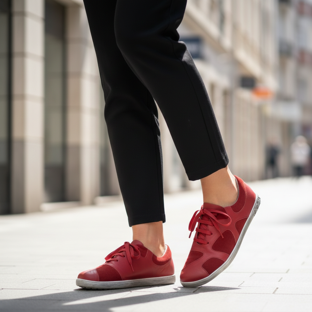 Are you ready for a sneaker that is excitingly different? Qaanaaq Bordeaux is our barefoot sneaker with trend potential. Because the interplay of nappa and suede in various red nuances ensures an exciting and powerful design. A real masterpiece!