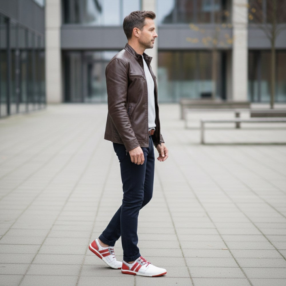 With its successful play of colors made of white and red, the sneaker looks fresh and fits perfectly into the warmer half of the year. For Qanberra we use finely perforated, white nappa leather, which ensures high breathing activity. So your feet will feel in the sneaker even on the hottest days of the year without glowing.