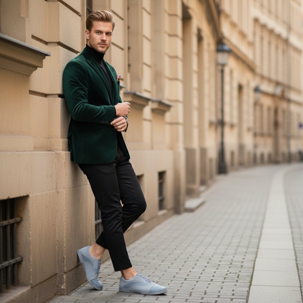 This classic business shoe is timeless and fits perfectly with the suit, but can also be easily combined with jeans in order to bring more elegance into the casual look. For Qentle we use high-quality velor and nappa leather, which looks particularly noble due to the lines and framing broguings and visually stretches the barefoot shoe.