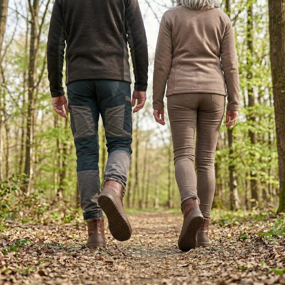 Outdoor rubber sole with zero heel, thus relieving the spine and protecting the joints, supports the natural posture