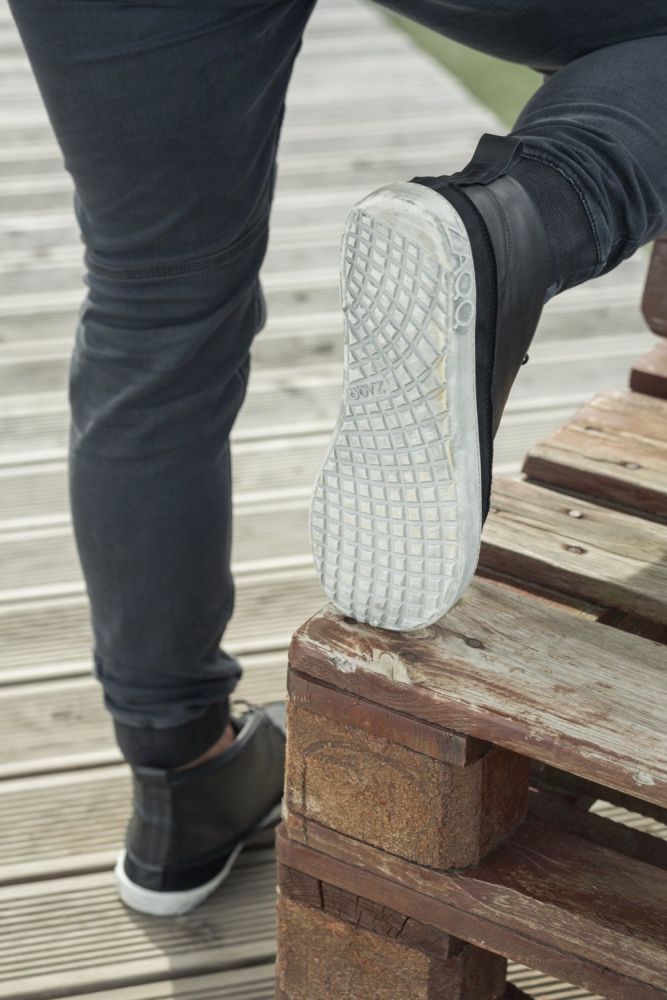 The upper material of your barefoot sneaker Quitman consists of high -quality, black nappa leather with a special velor detail, which makes the shoe optically so appealing: right above the sole we have sewn an element of finely sanded suede. This makes the shoe appear narrower in the front area. In fact, however, it offers a lot of volume for your toes and bales in the front shoe.