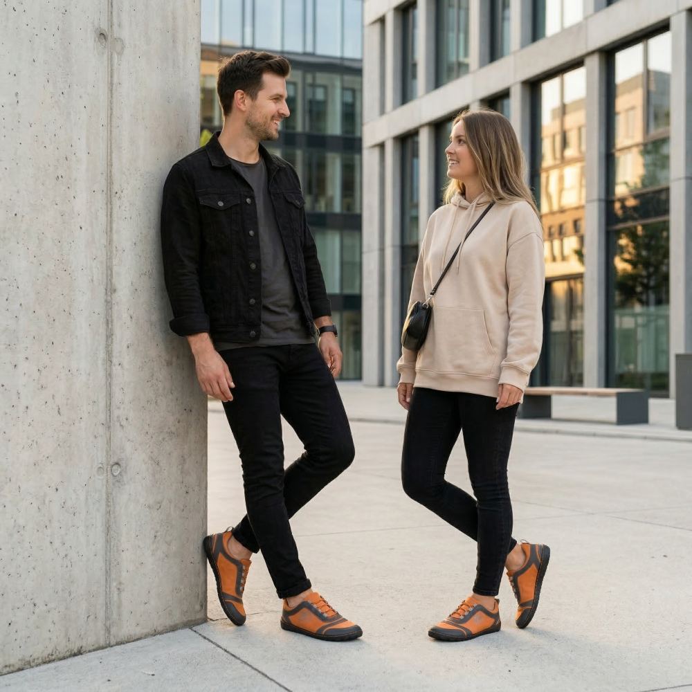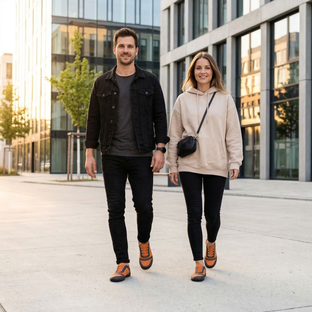 This outdoor running shoe is stylish and modern, but there is much more in it! The discontinued details in black and that ZAQQ Logo in silver on an orange surface, give the barefoot shoe that certain extra! The attention to detail is also outstanding - an orange seam on the sole offers a great eye -catcher and the shaft was sewn by hand.