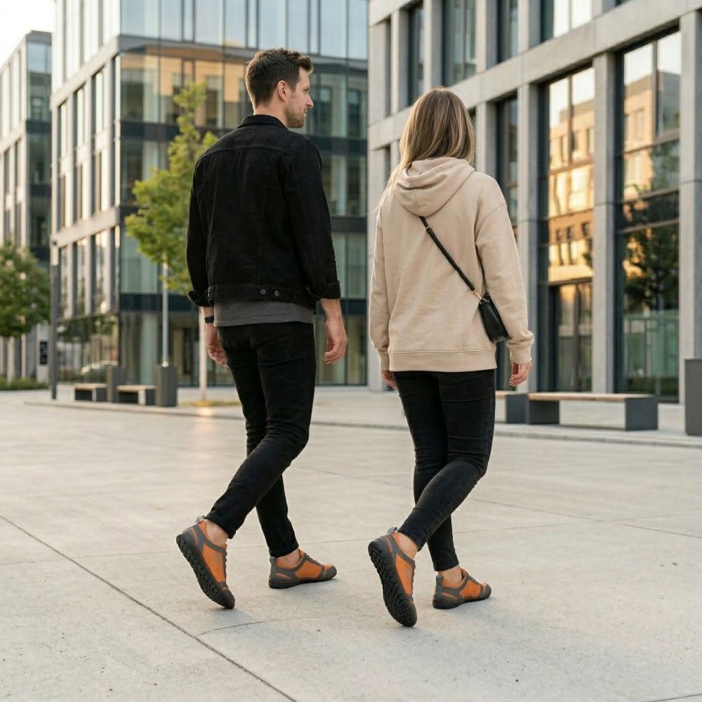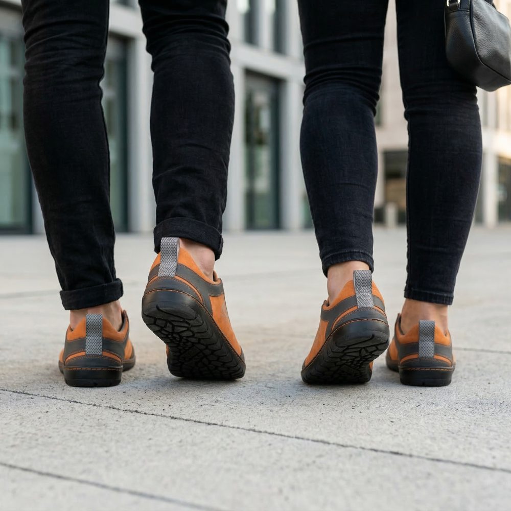 Outdoor rubber sole with zero heel, thus relieving the spine and protecting the joints, supports the natural posture